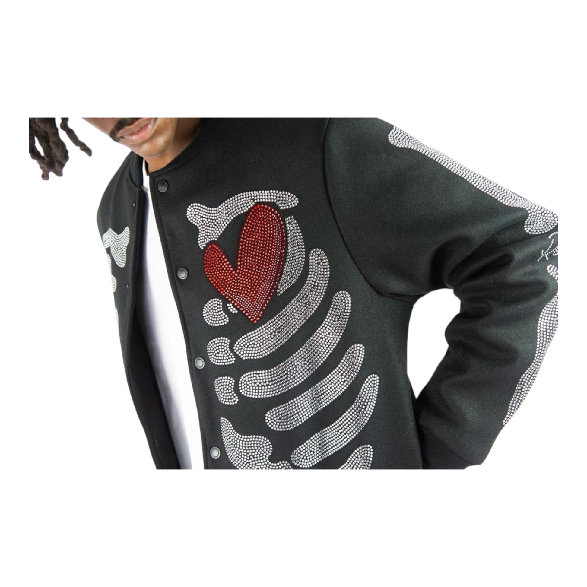 Men's Rebel Skeleton Melton Rhinestone Varsity Jacket