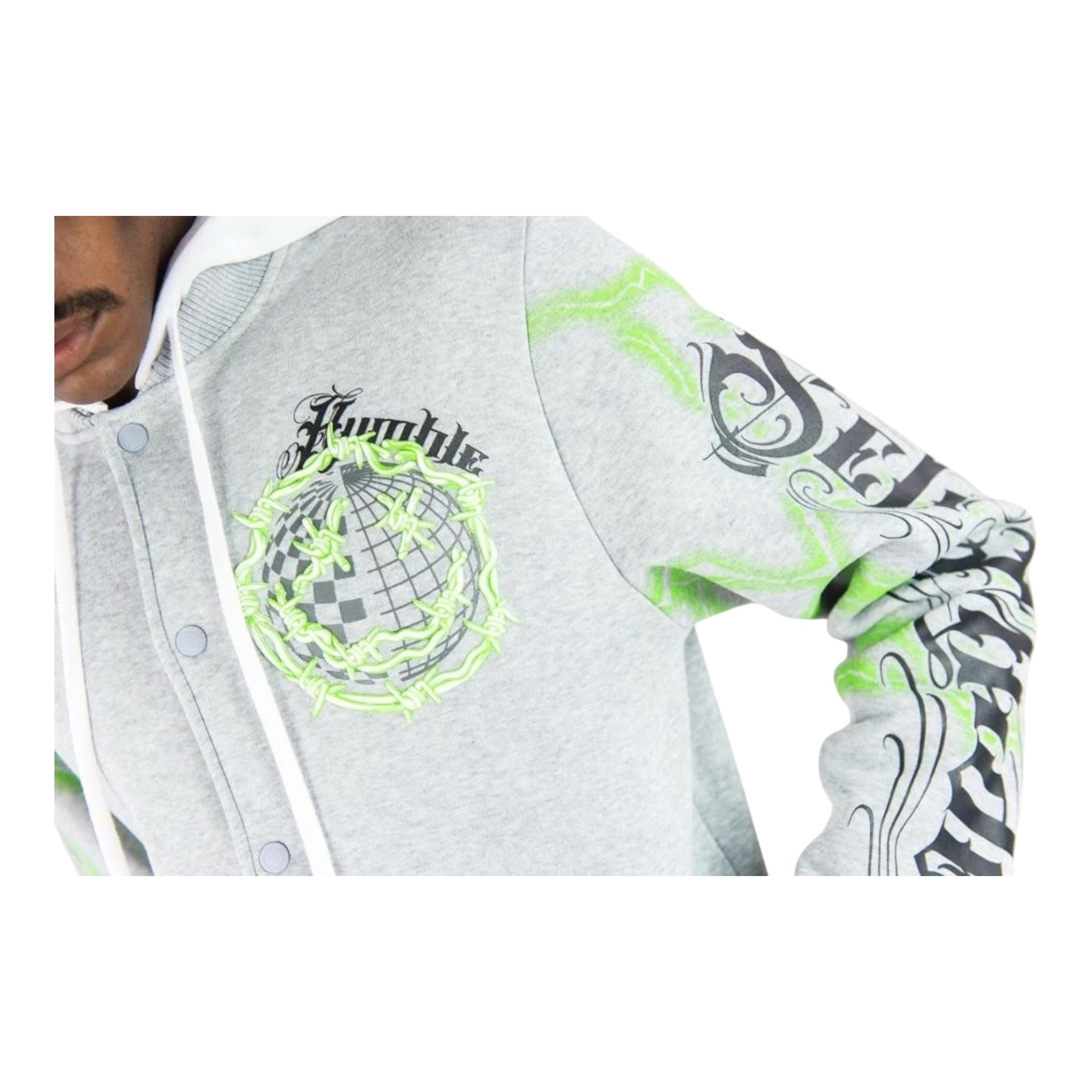 Men's HUMBLE Light Weight Fleece Varsity Jacket w/Hoodie (H.Grey)