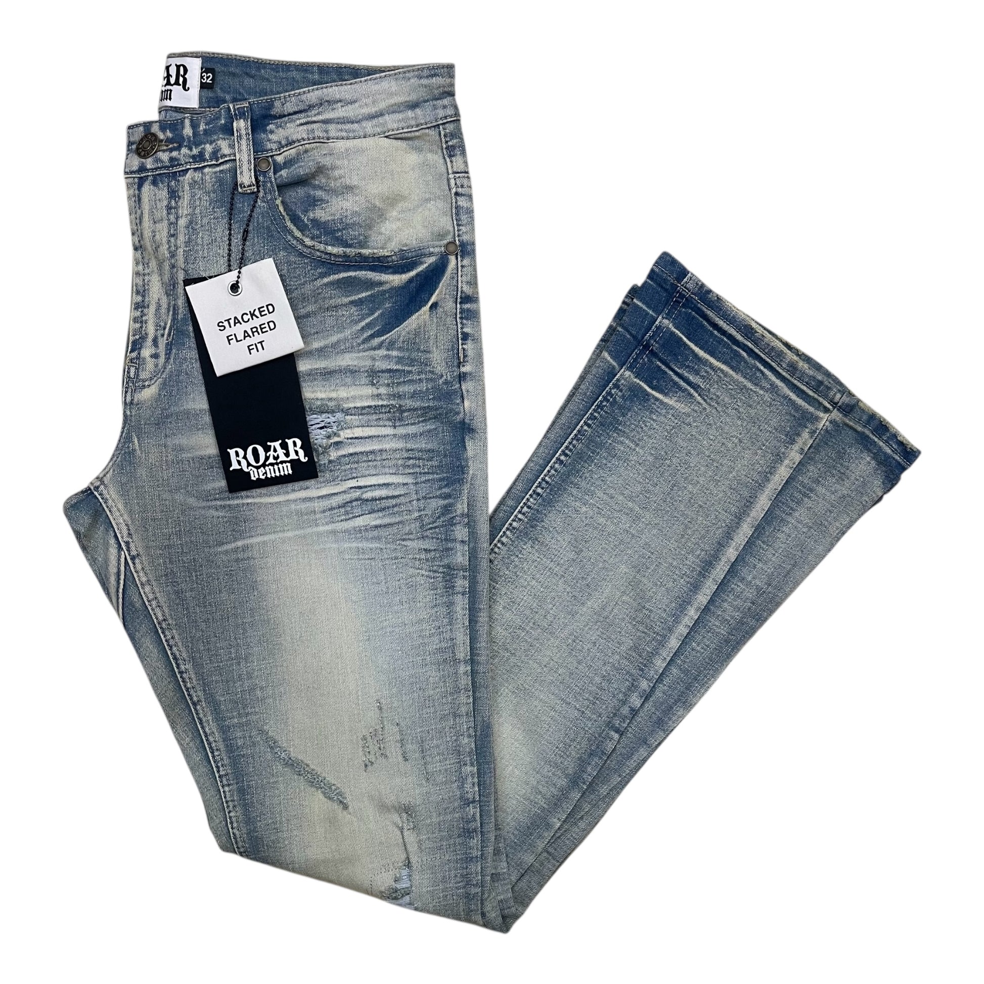 A00-43435 - Distressed Stretch Stacked Flare Jeans