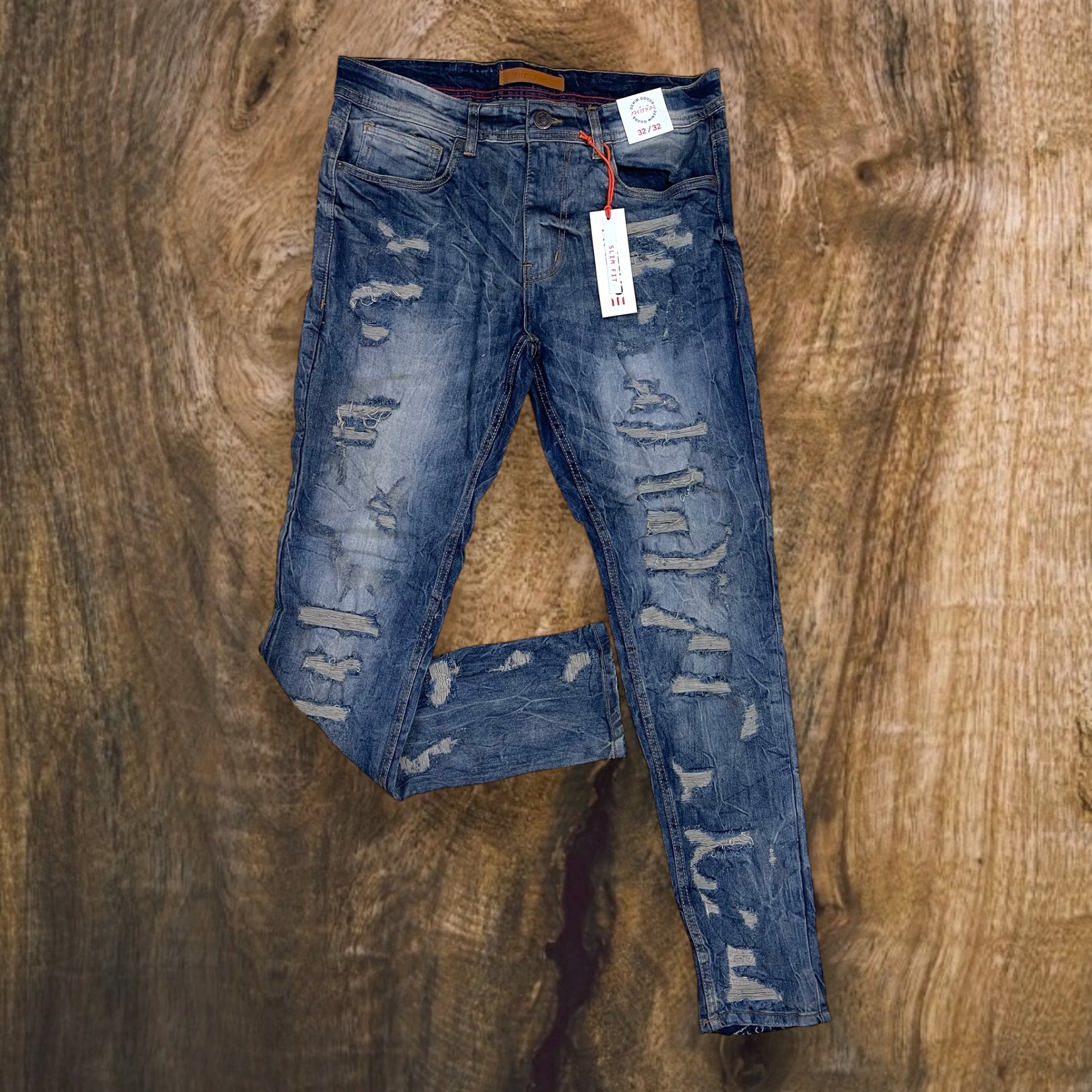 P526 - Allover Ripped Slim-Fit Stretch Jeans
