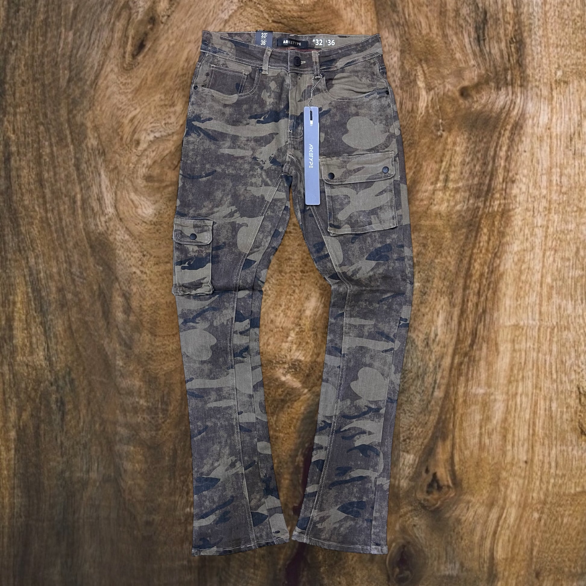 P535 - Cargo & Panel Stretch Stacked Flare Jeans