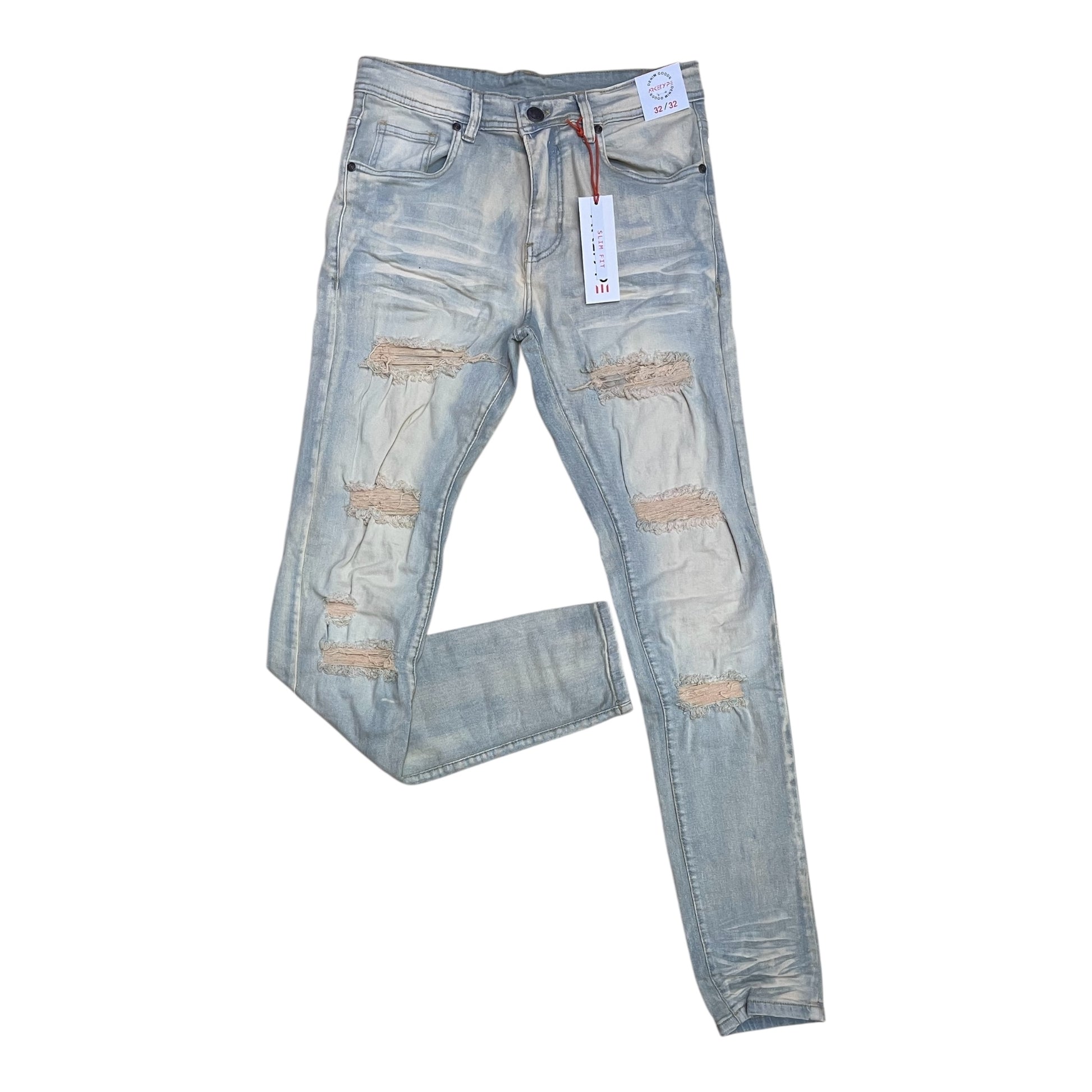 Men's Double Whisker Rip n Repair Slim-Fit Stretch Jeans
