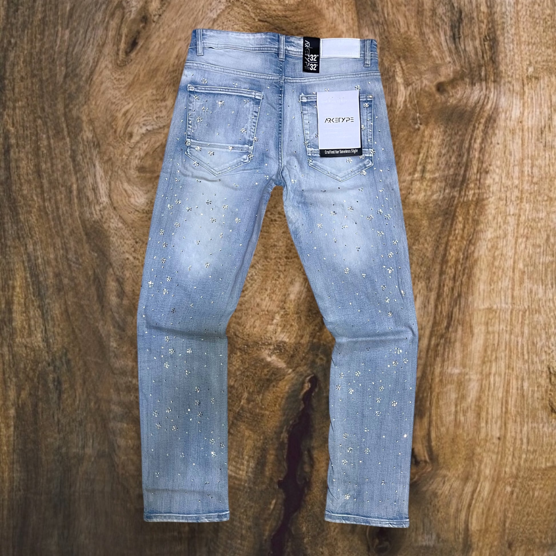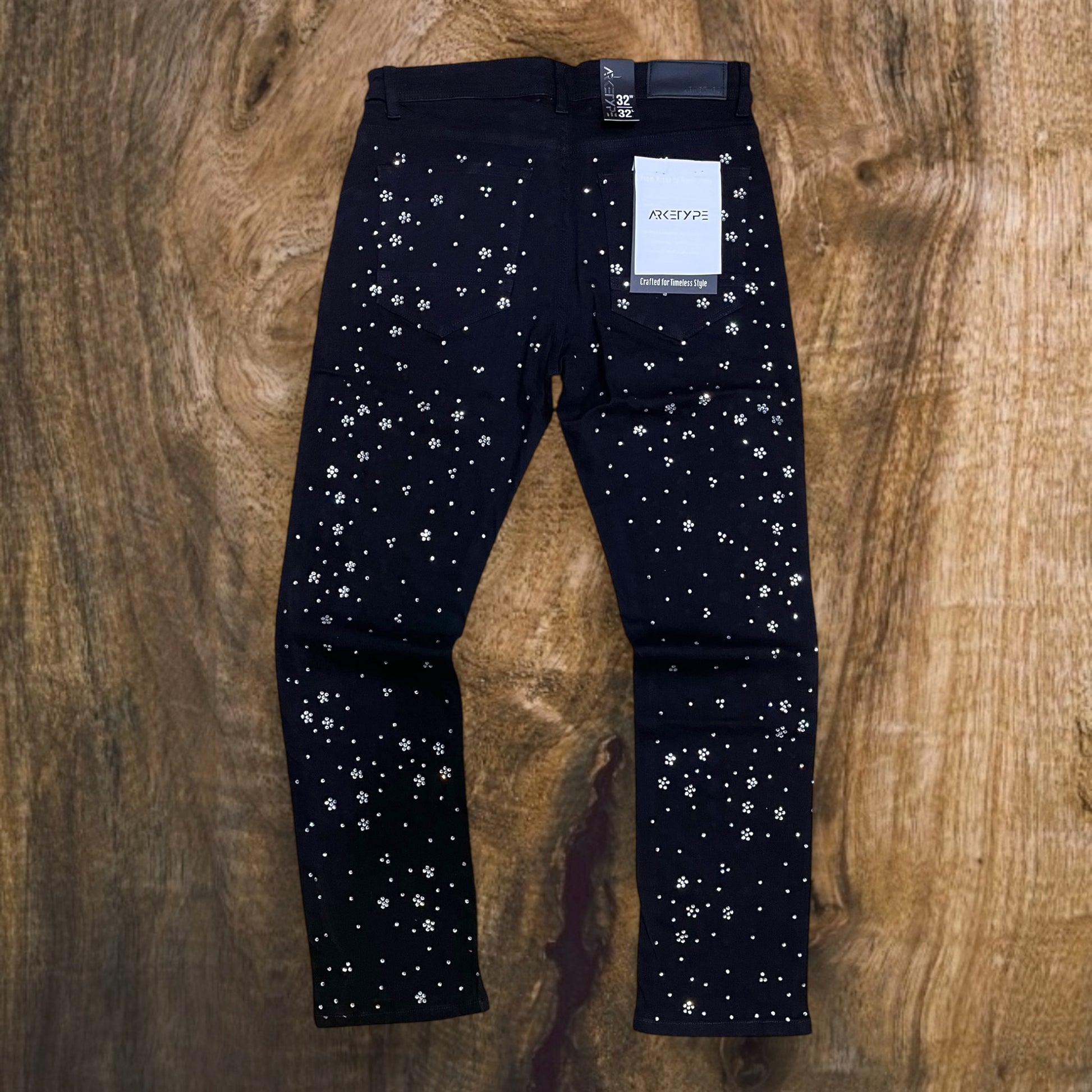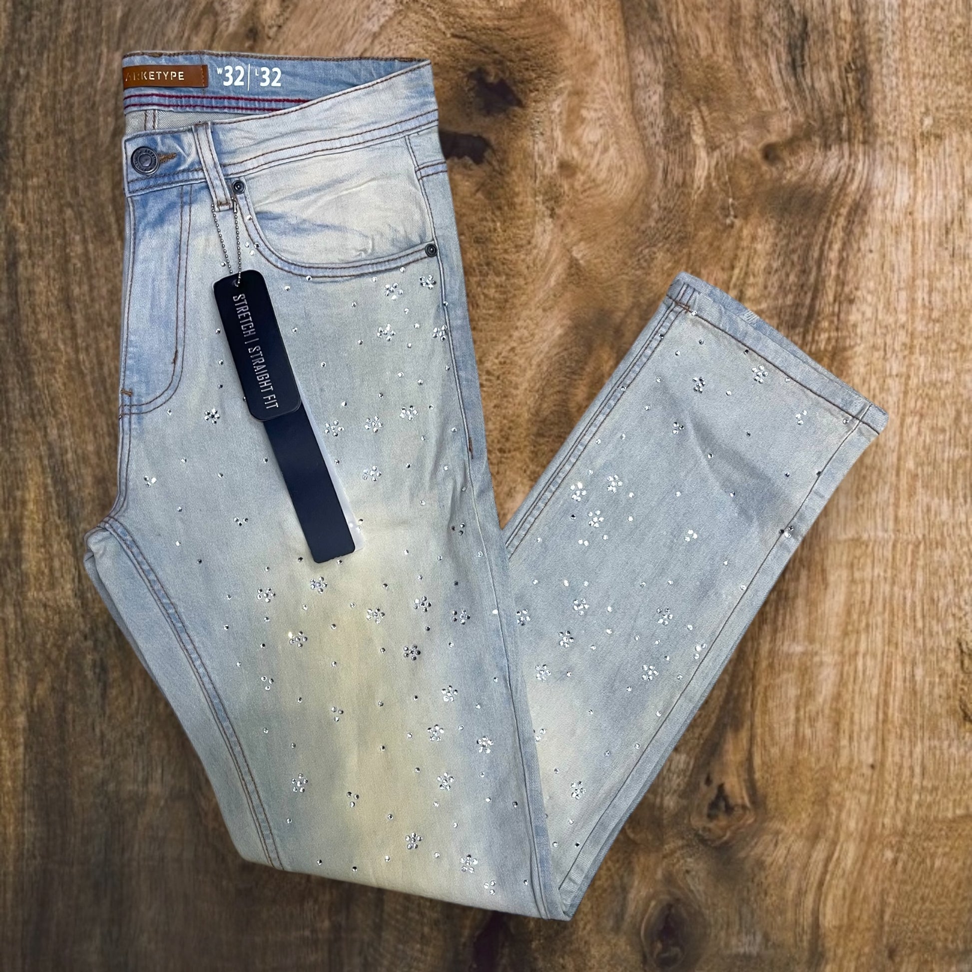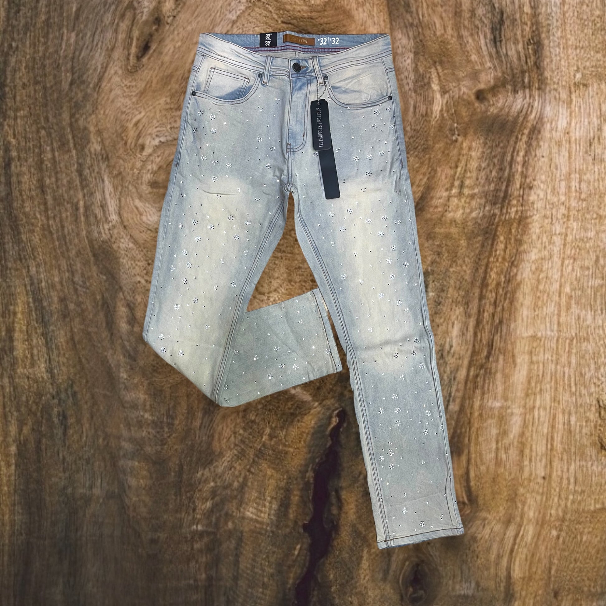 Men's Floral Pattern W/ All Over Rhinestone Straight-Fit Stretch Jeans