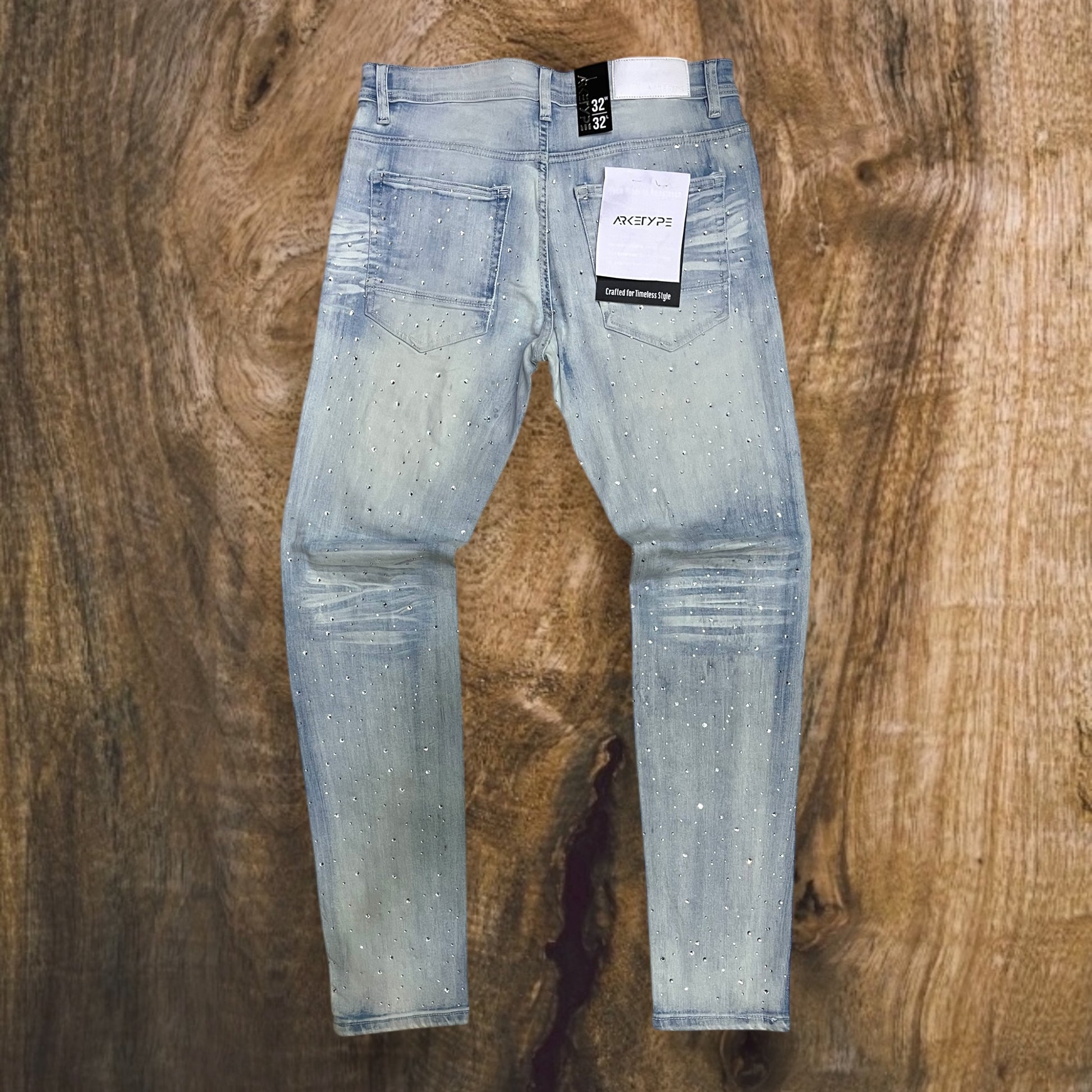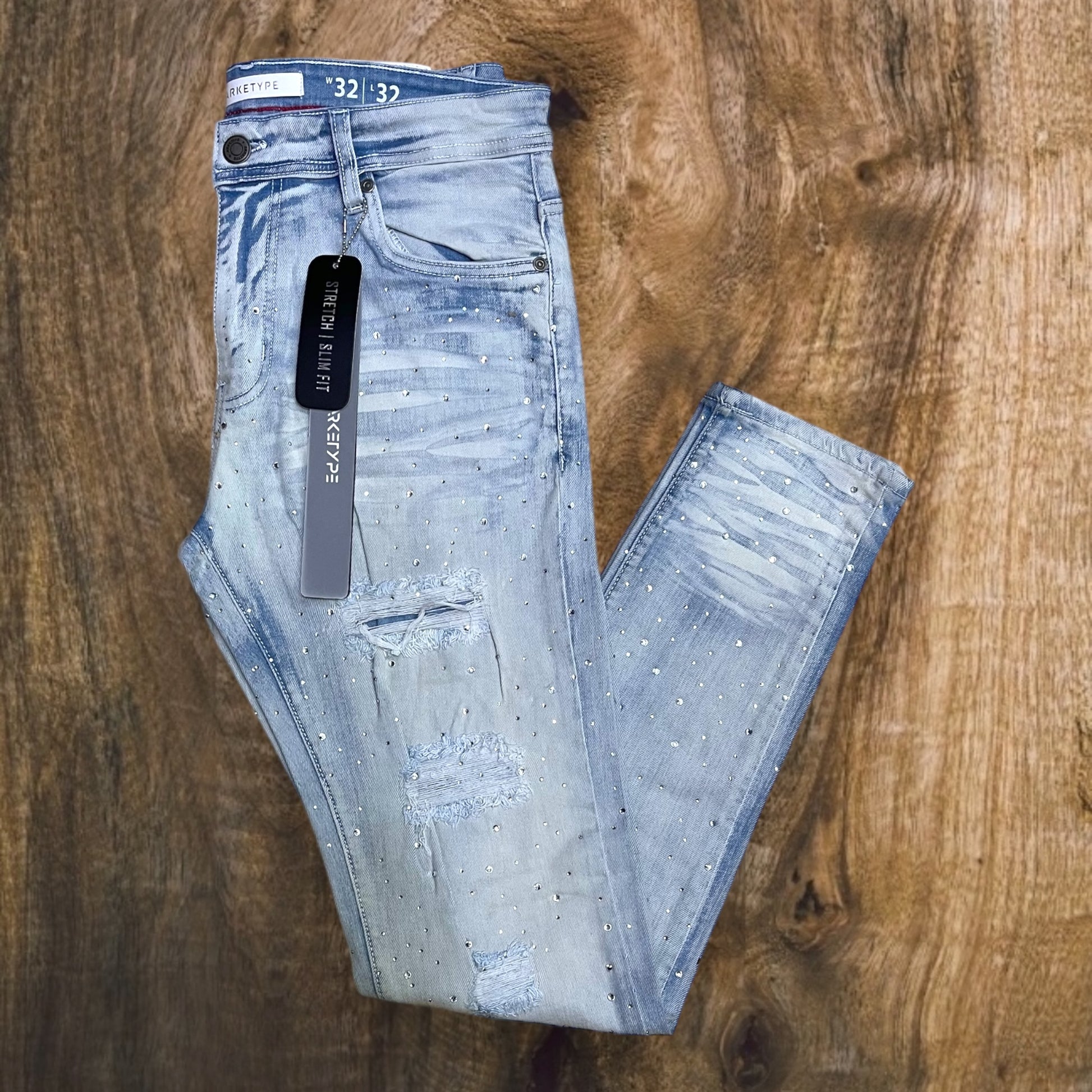 P547 - Rip & Repair All Over Rhinestone Slim-Fit Stretch Jeans