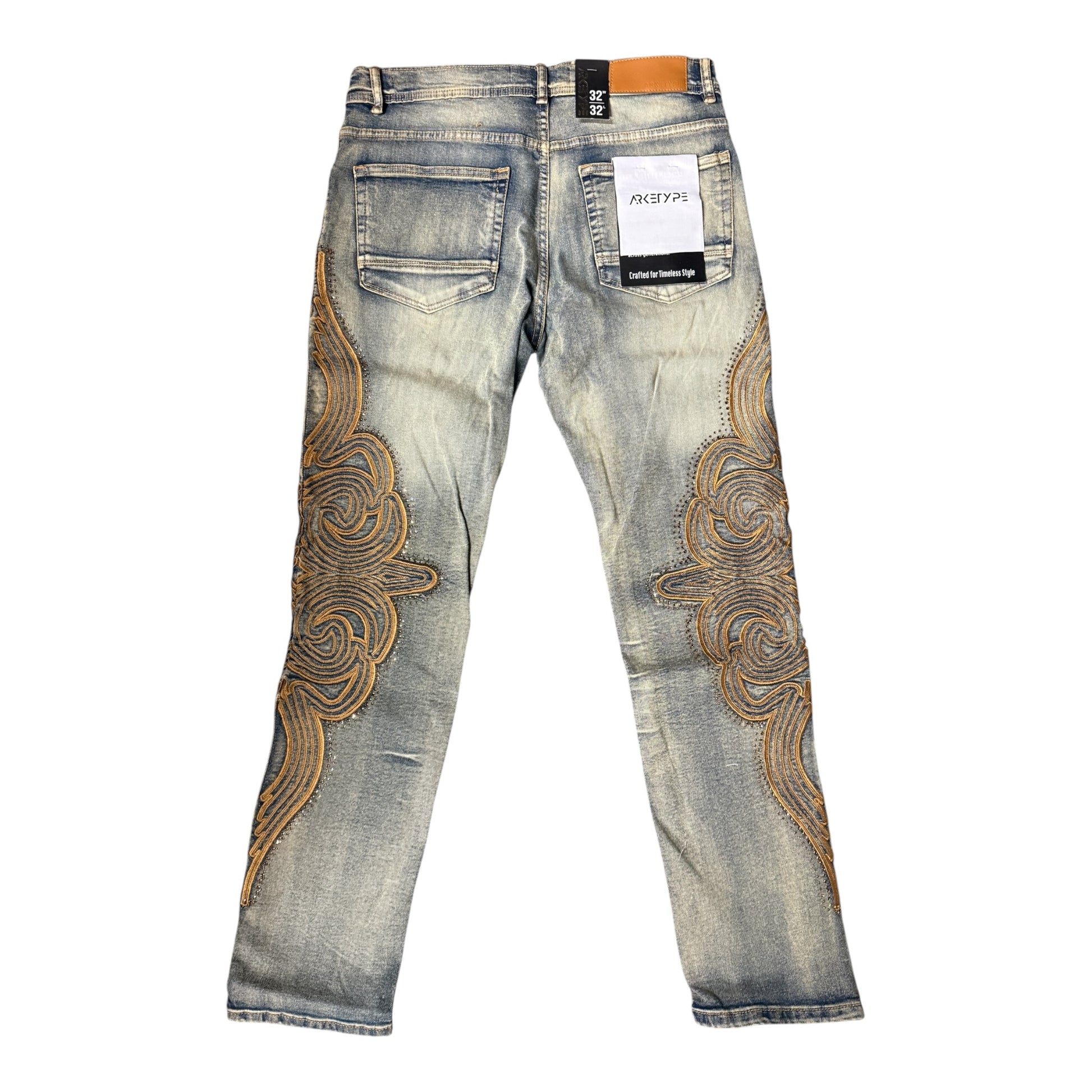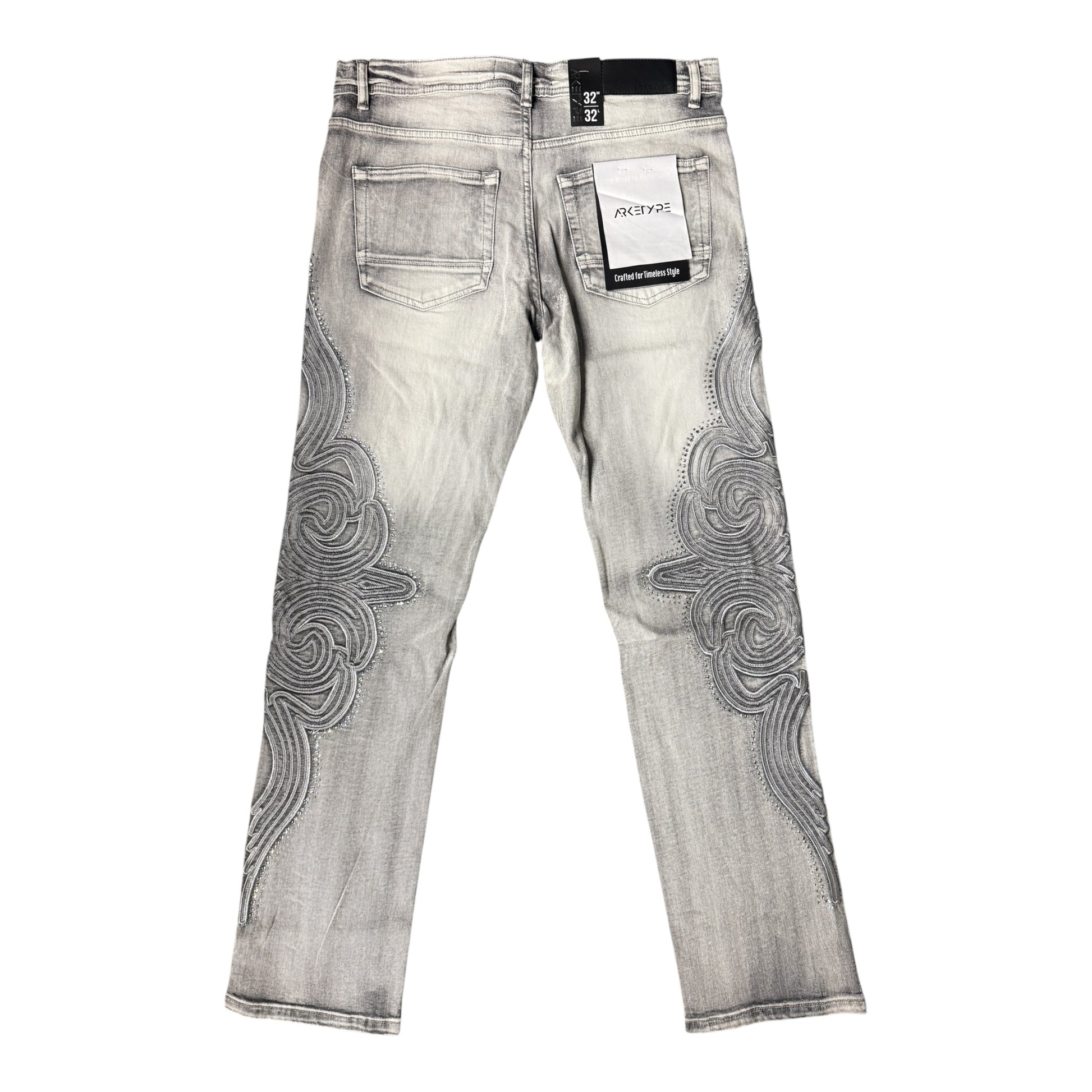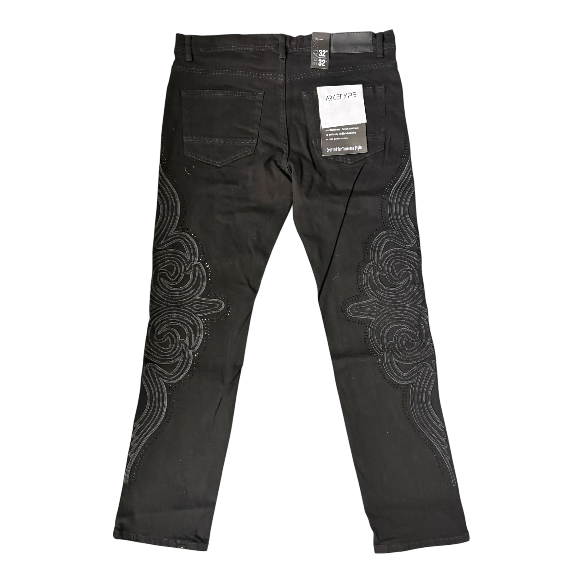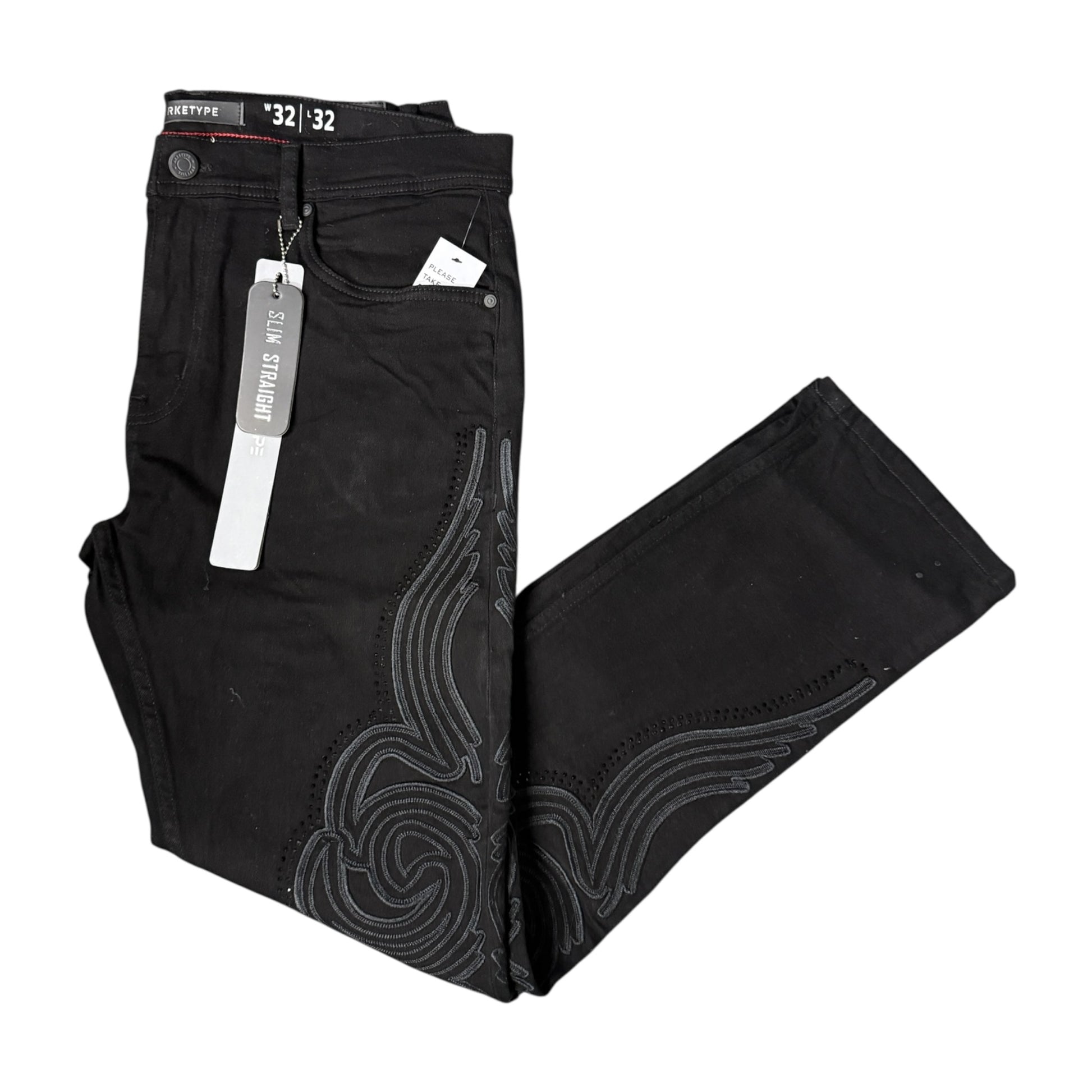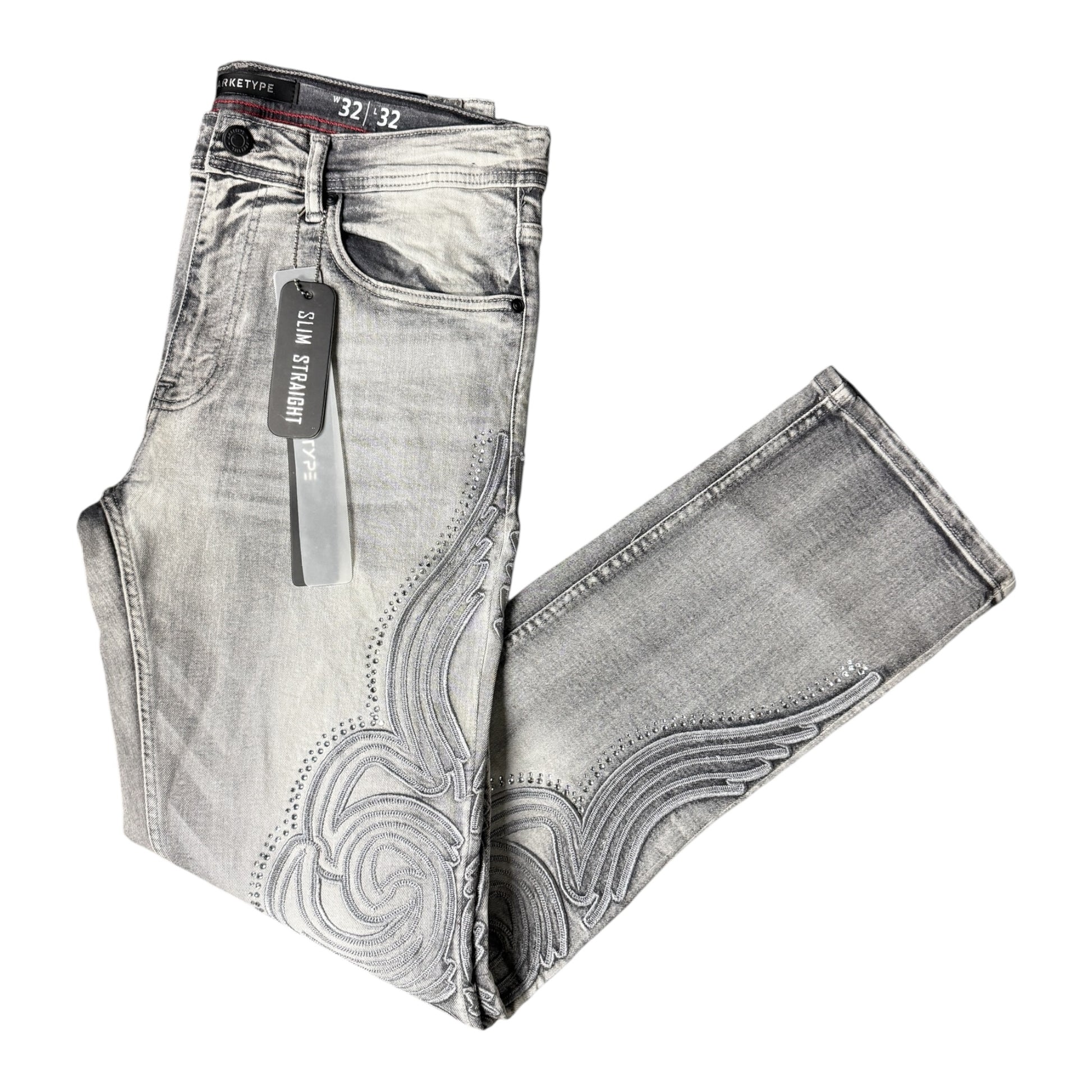 WH-P568 - Ornate Embroidered with Rhinestones Slim Straight-Fit Stretch Jeans