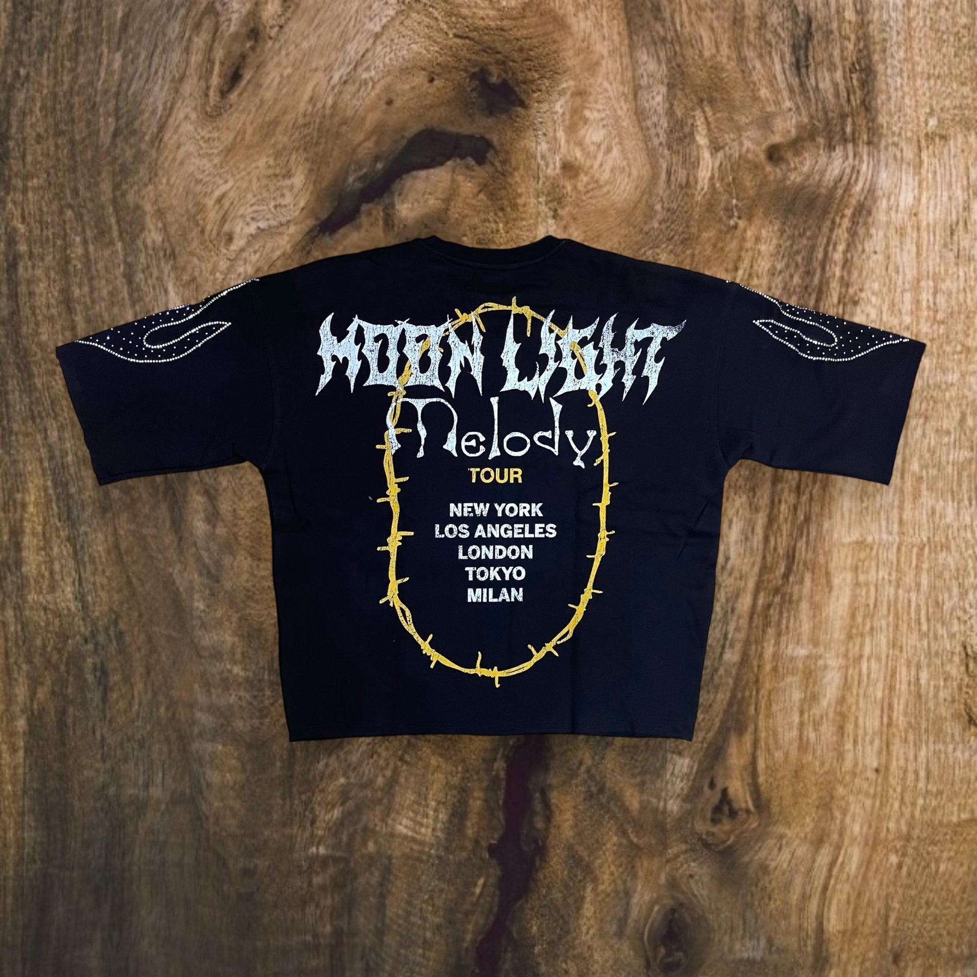 RK5481768 - Graveyard Groove with Rhinestones Cropped Drop Shoulder Fleece Crewneck