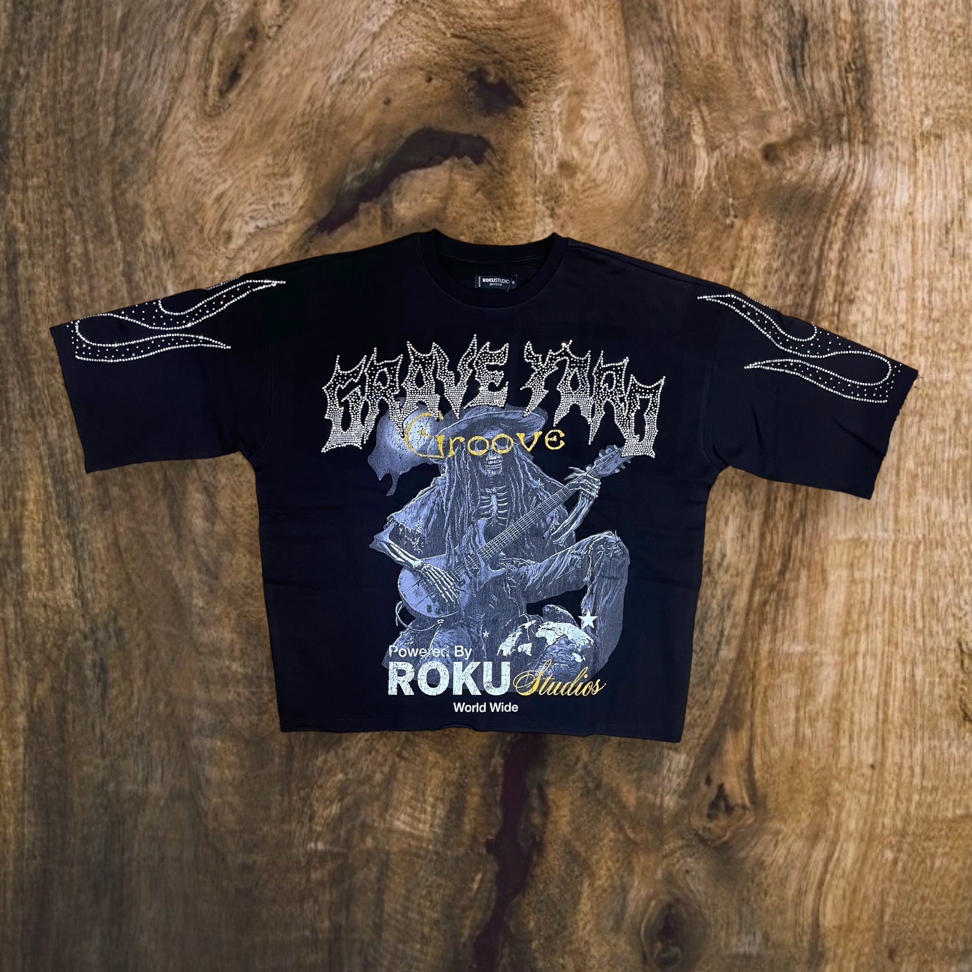 Men's Graveyard Groove with Rhinestones Cropped Drop Shoulder Fleece Crewneck