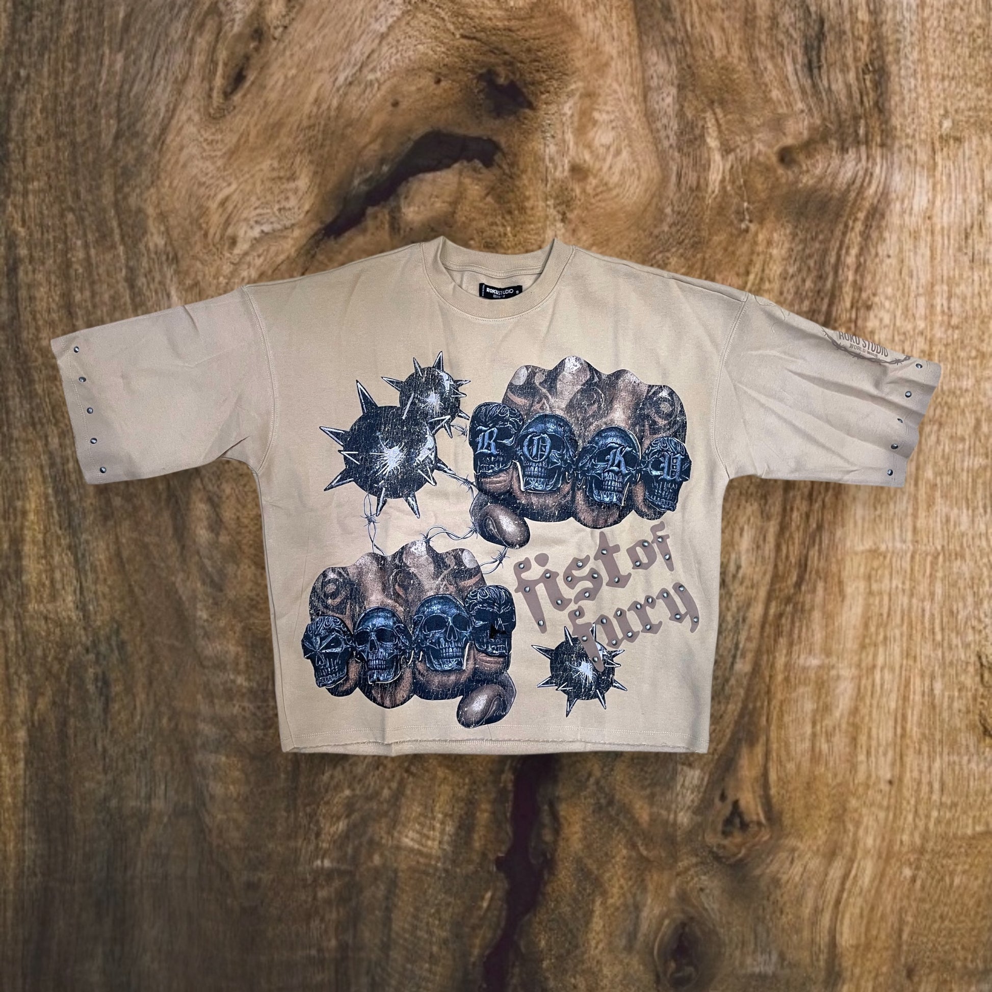 Men's FIST OF FURY with Studs Cropped Drop Shoulder Fleece Crewneck