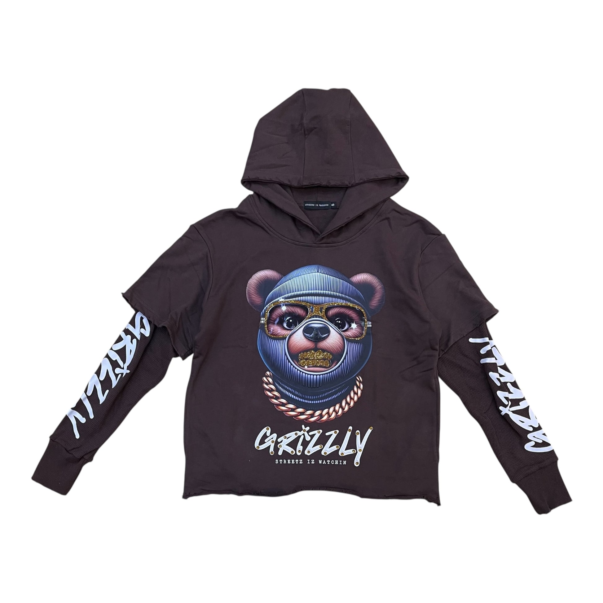 S2FH5238 - Grizzly Rhinestones 2FER Cropped Hoodie