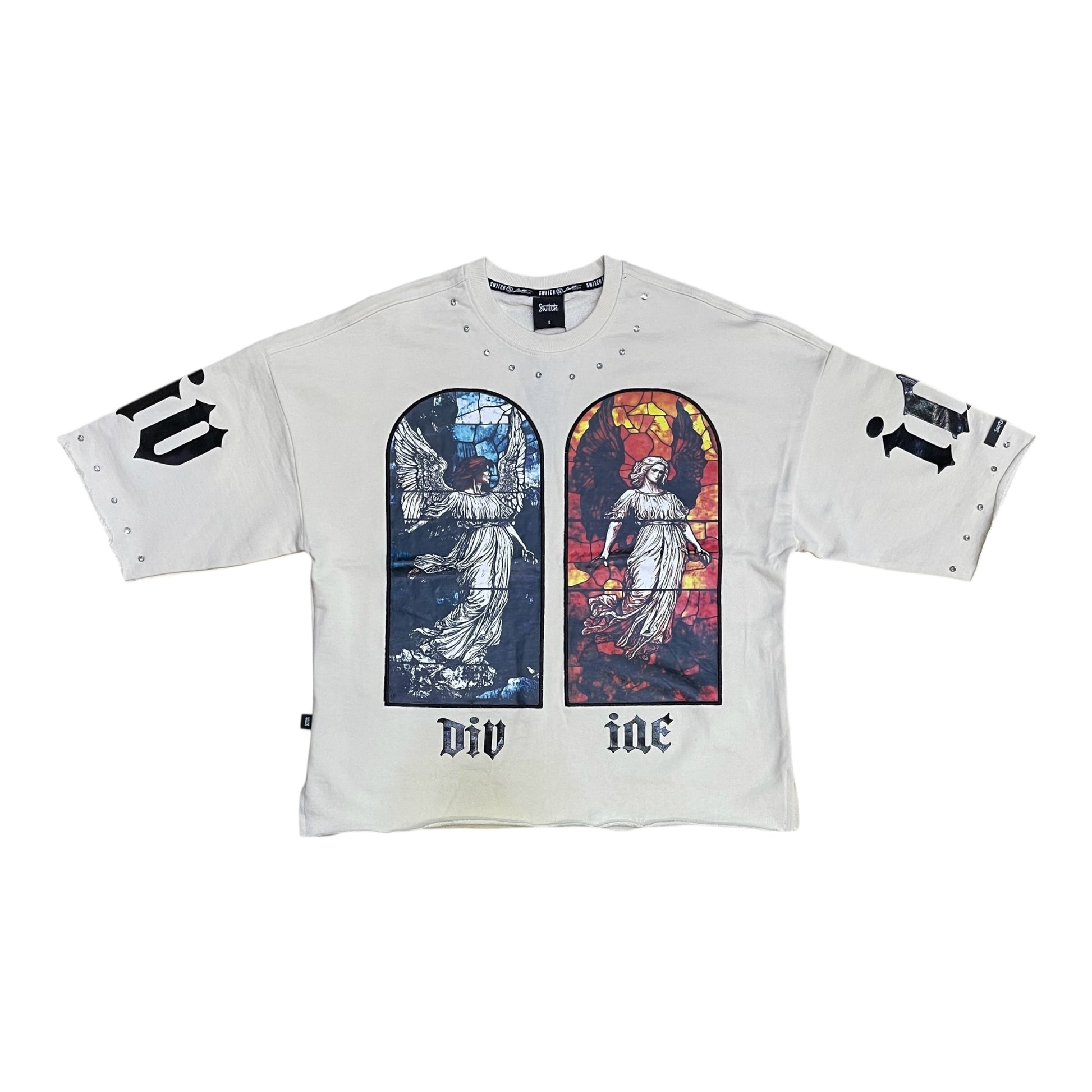 SM6156 - Divine "Where Prayers" with Studs Cropped Top Graphic T-Shirt