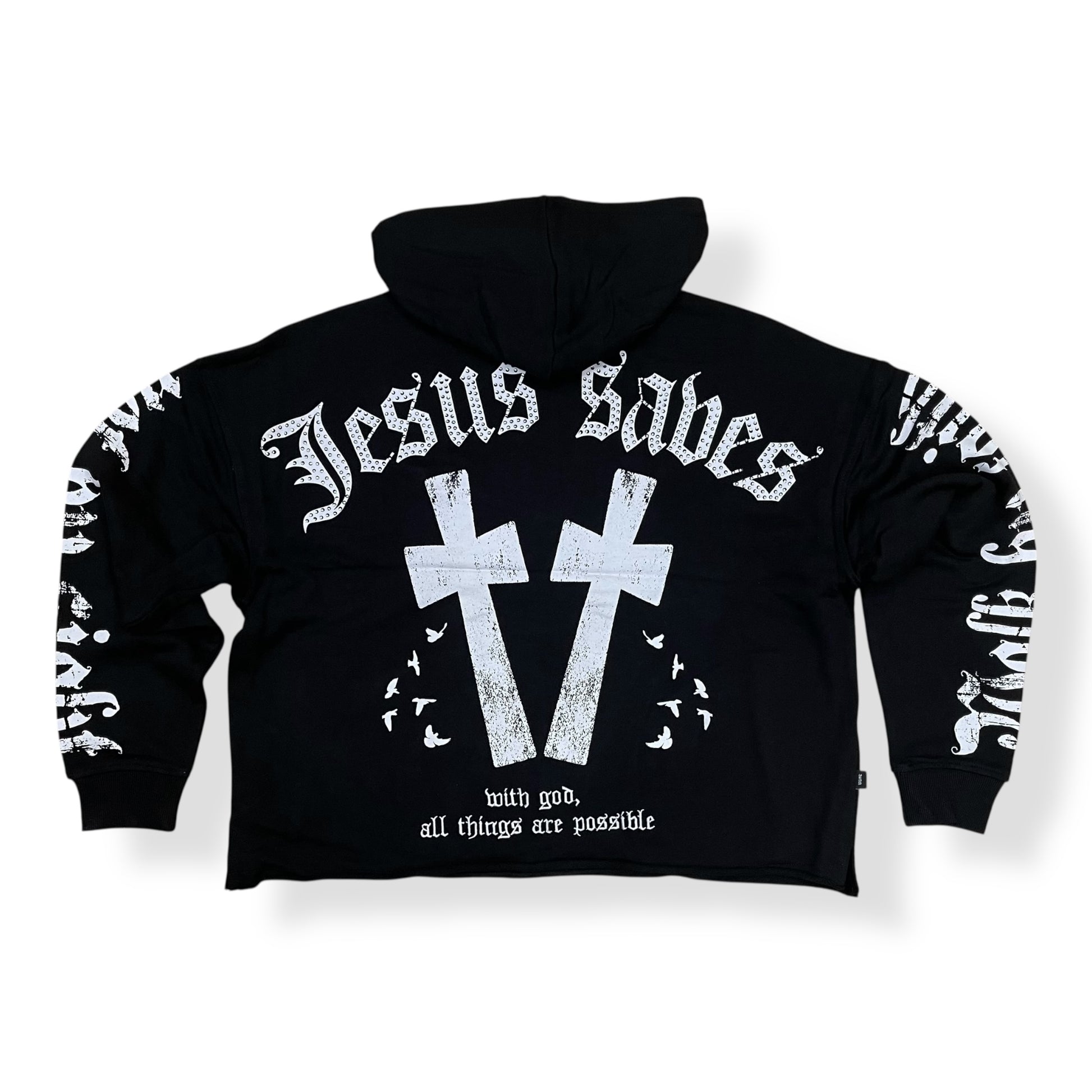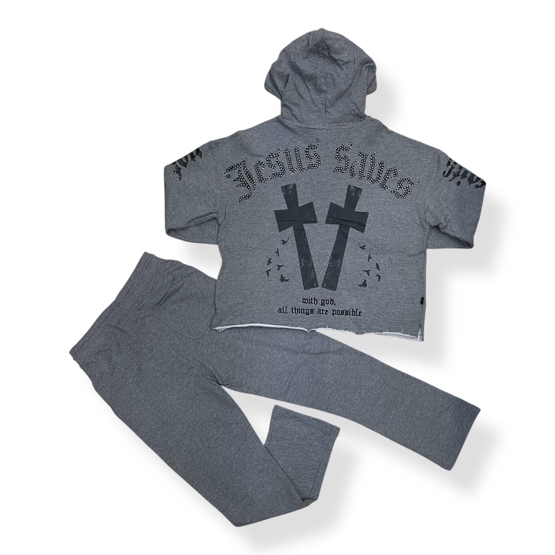 SW5241 - JESUS SAVES CROSS With Rhinestone Hoody & Stacked Fleece Pant (2 Piece Full Set)