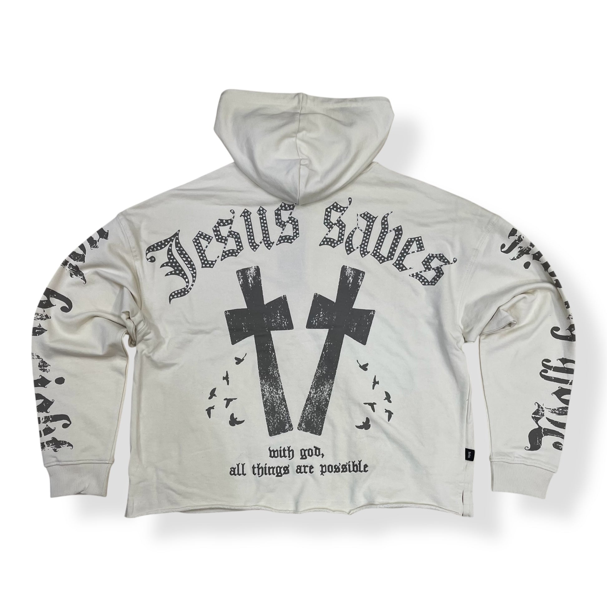 Men's JESUS SAVES CROSS With Rhinestone Hoody & Stacked Fleece Pant (2 Piece Full Set)
