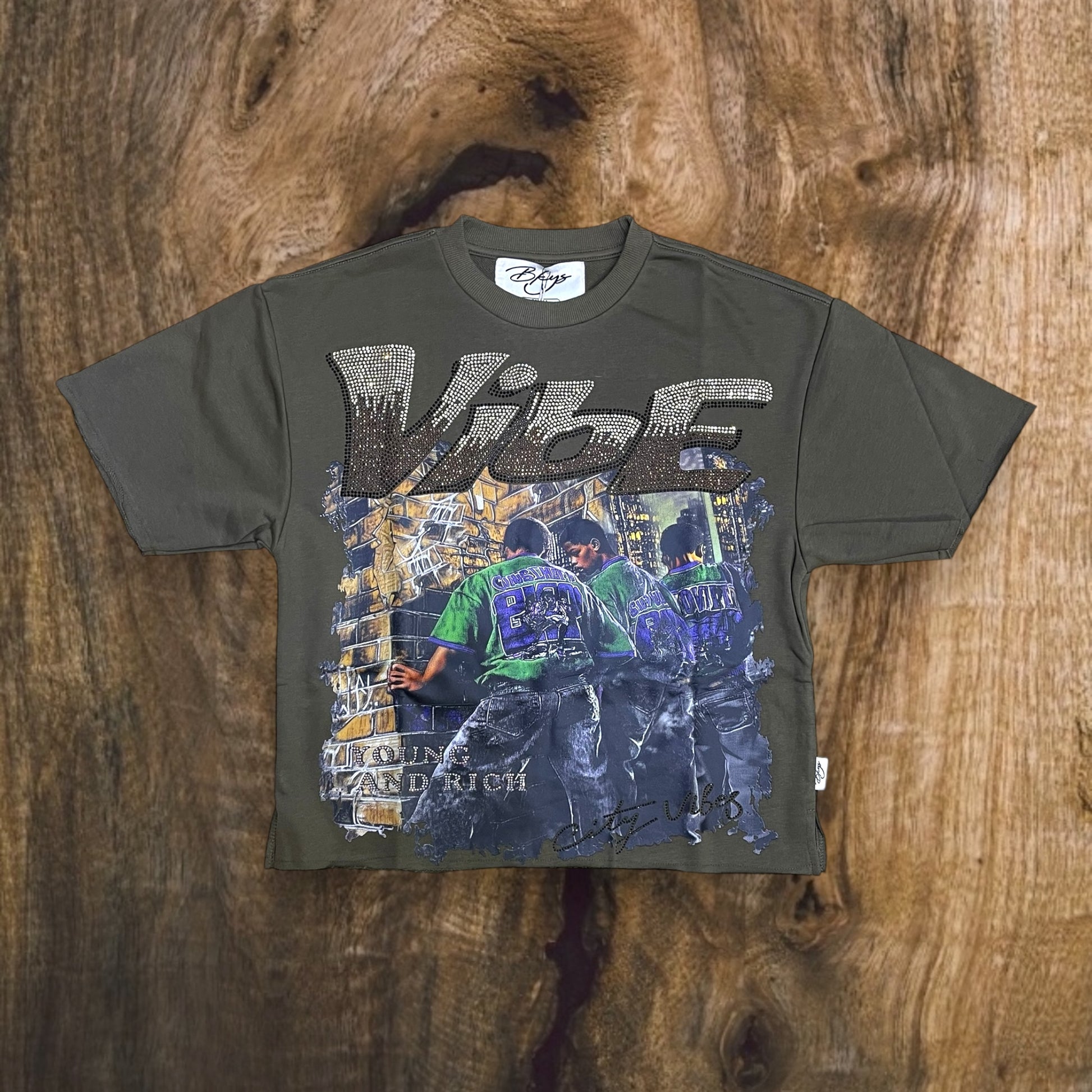 Men's Vibe with Rhinestones Cropped Top T-Shirt