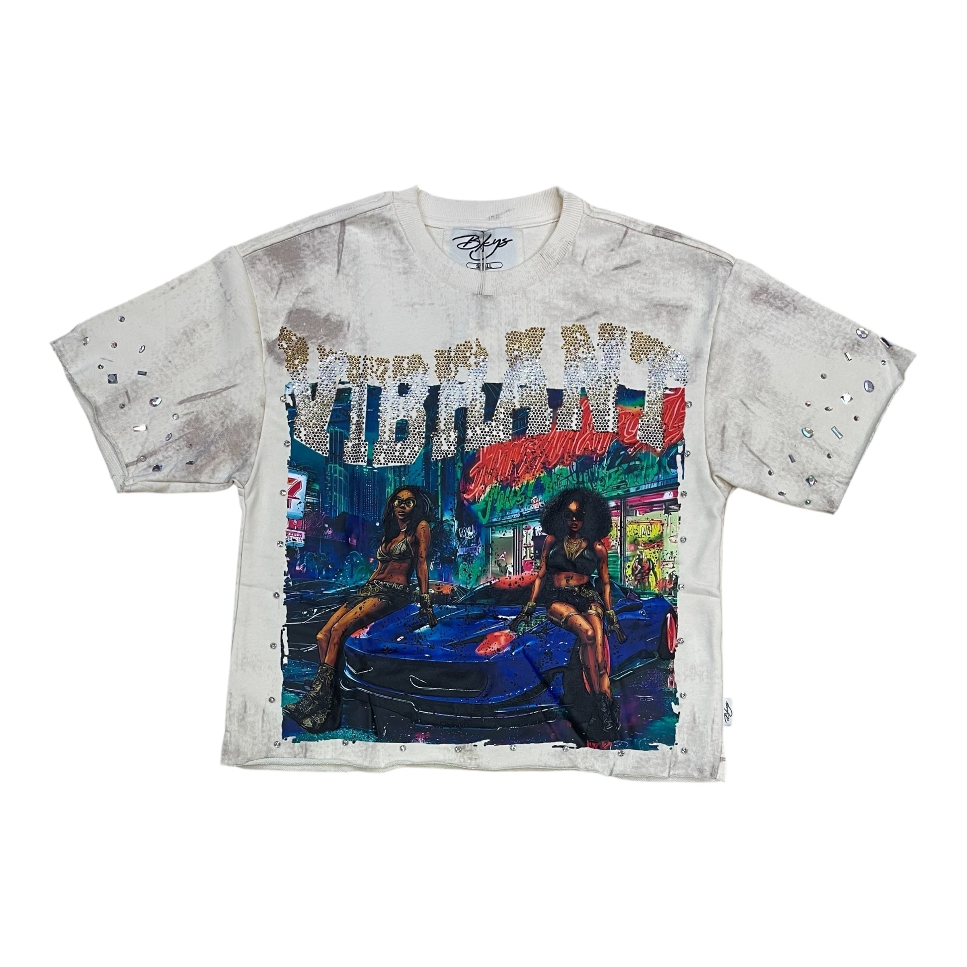 T1432 - Vibrant with Rhinestones Cropped Top T-Shirt